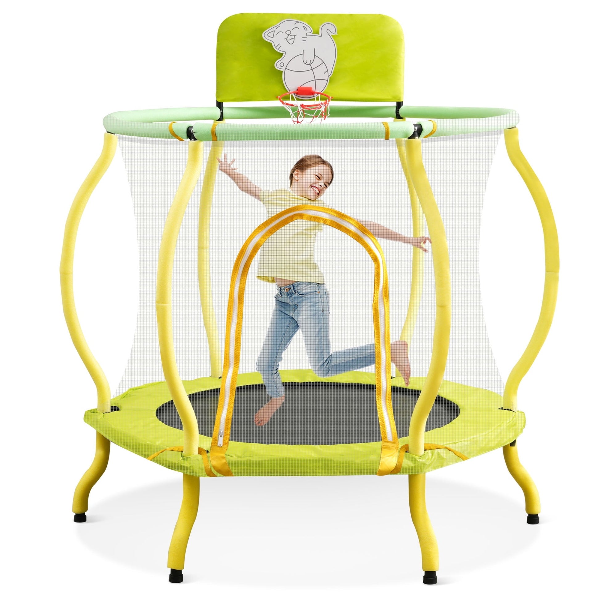 4FT Small Trampoline, Seizeen Toddler Trampoline with Enclosure Net and Hoop, Indoor Outdoor Mini Trampoline Arc Designed, Yellow