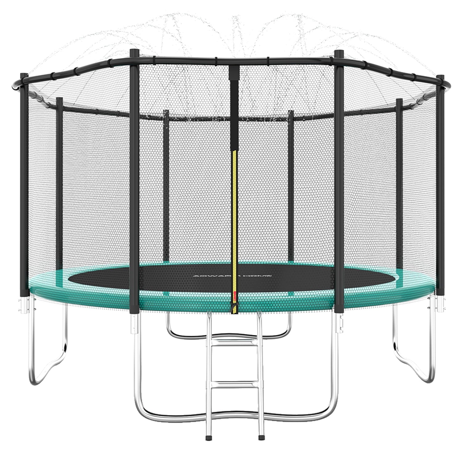 ACWARM HOME 10 FT Trampoline for Kids and Adults, Trampoline with Sprinkler and Safety Enclosure Net, Backyard Trampoline with Ladder, Outdoor Recreational Trampoline