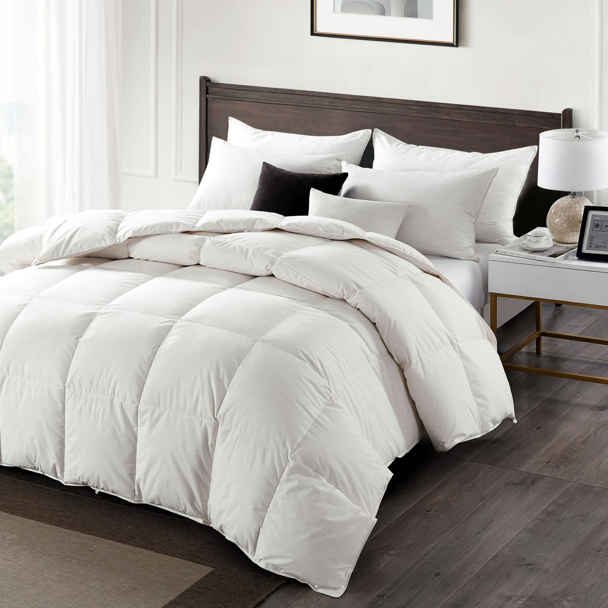 - 100% Organic Cotton --- This bed comforter with 100% organic cotton cover creates exceptional cozy and brings you ultimate sleeping experience. The ultra-soft feather down comforter is gold standard in fluffiness, ensuring maximum long-lasting cloud-like.