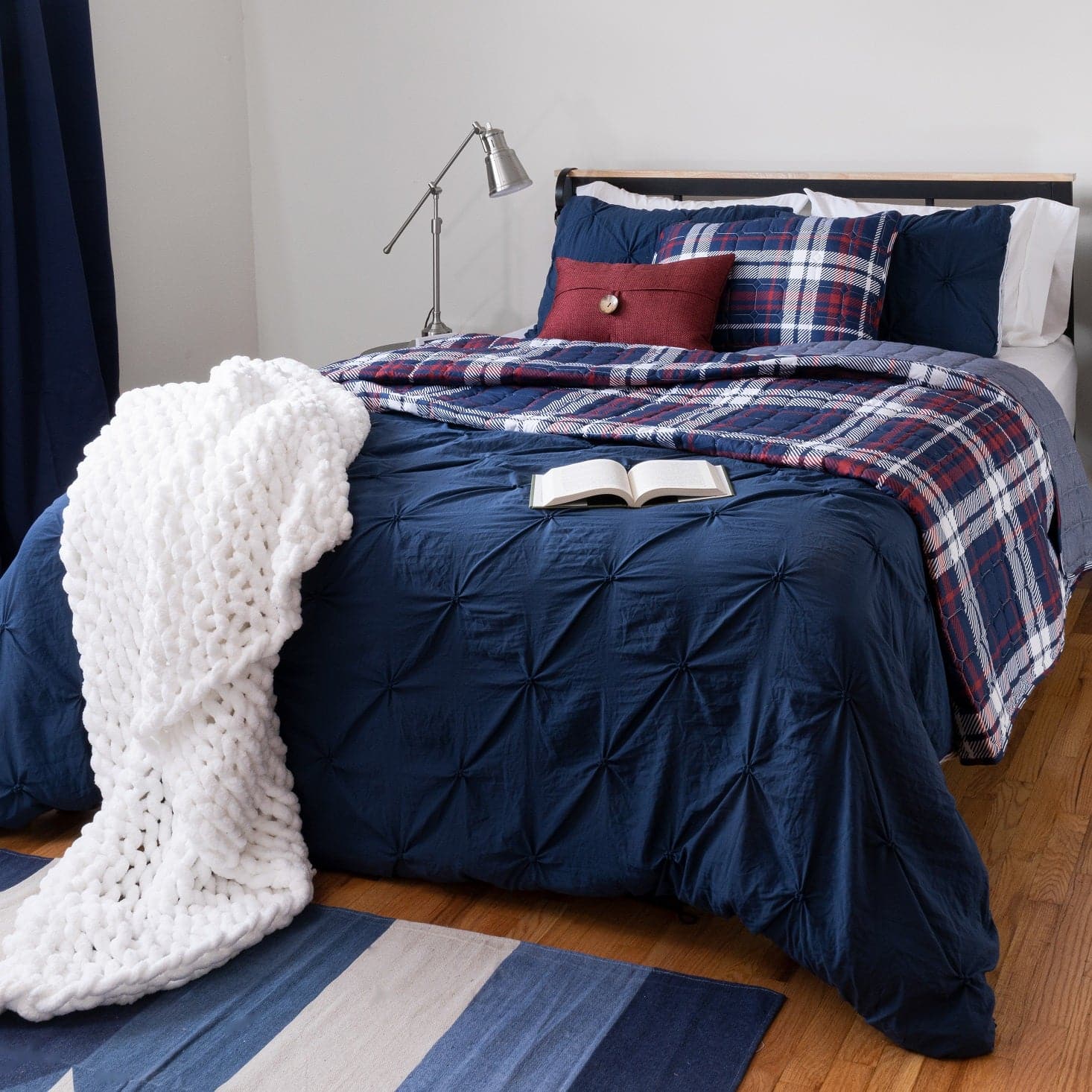 Buy these sets together as a bundle and save significantly off the cost of purchasing them separately. This bundled set includes one Grayson Farmhouse Plaid Quilt Set and one Ravello Pintuck Reversible Comforter Bed In A Bag.