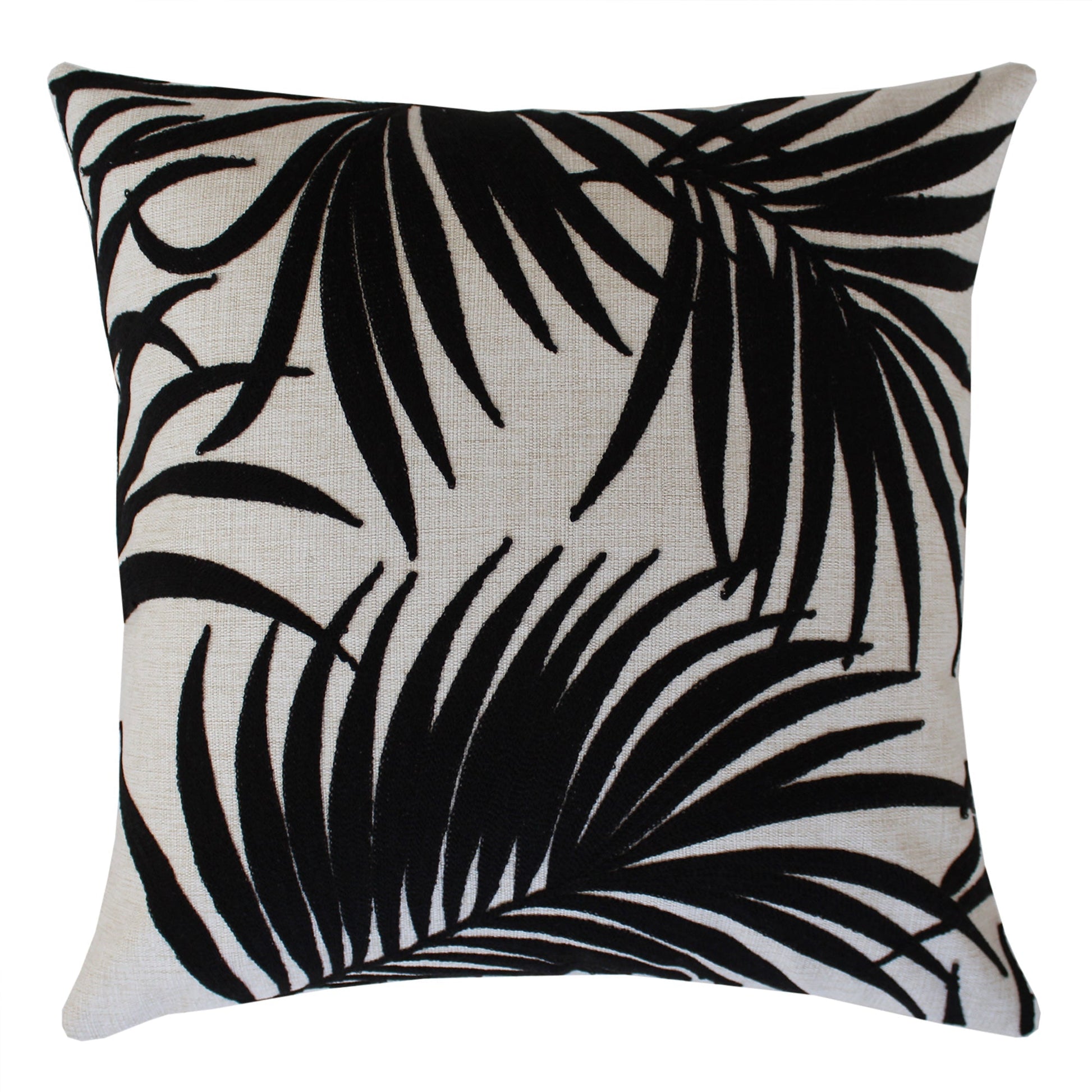 Cushion Cover-Boho Embroidery Single Sided-Palm Leaves Black-50cm x 50cm