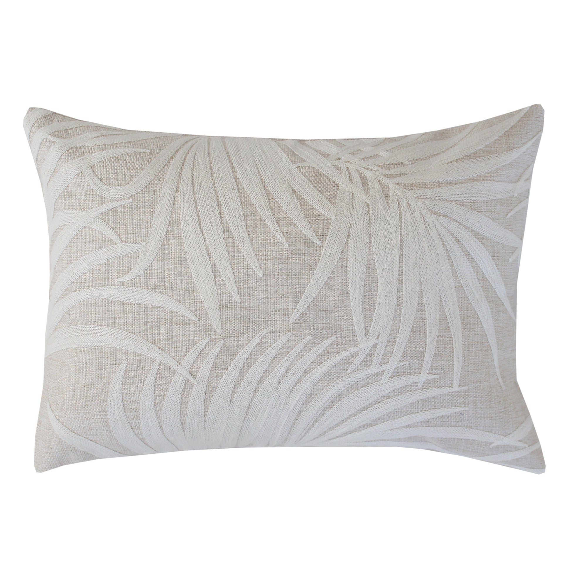 Cushion Cover-Boho Embroidery Single Sided-Palm Leaves White-30cm x 50cm