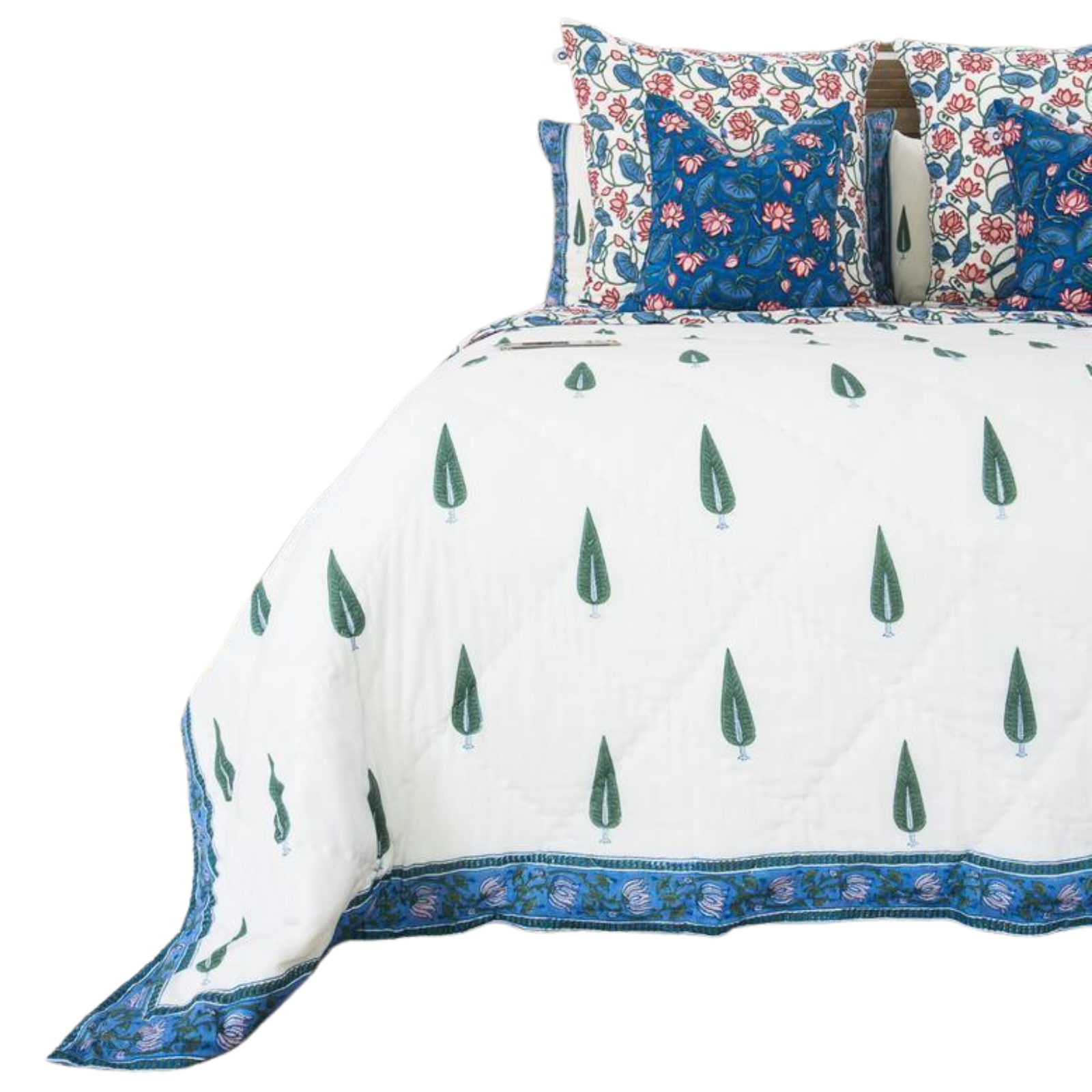 Kolka Kumudani Quilt 100% Cotton Lotus and Pines Print - Queen Size
