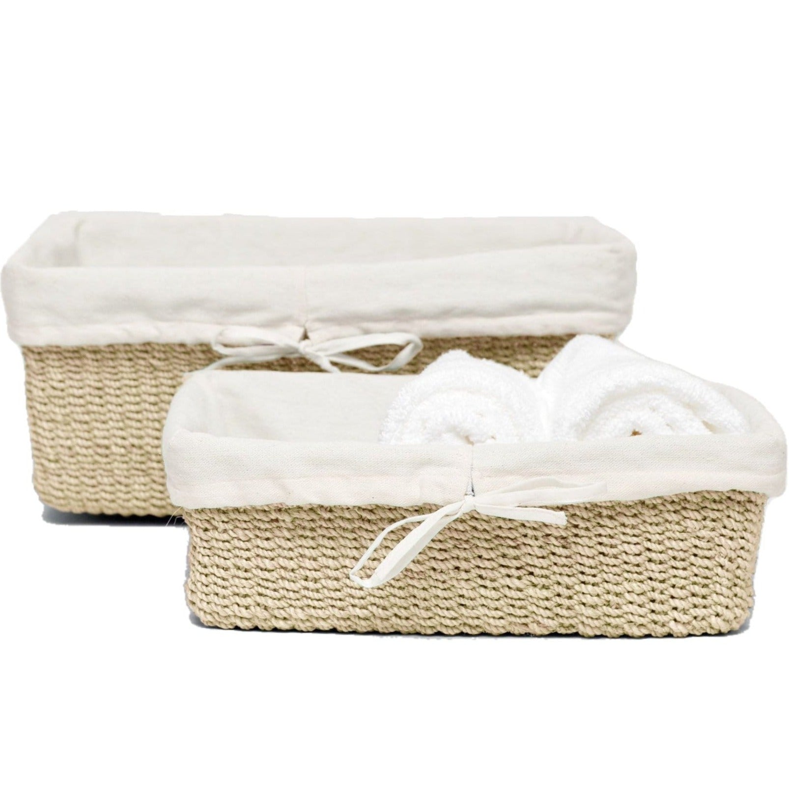 The Madison Baskets by Pigeon & Poodle features 2 basket trays woven out of abaca with removable linen covers.