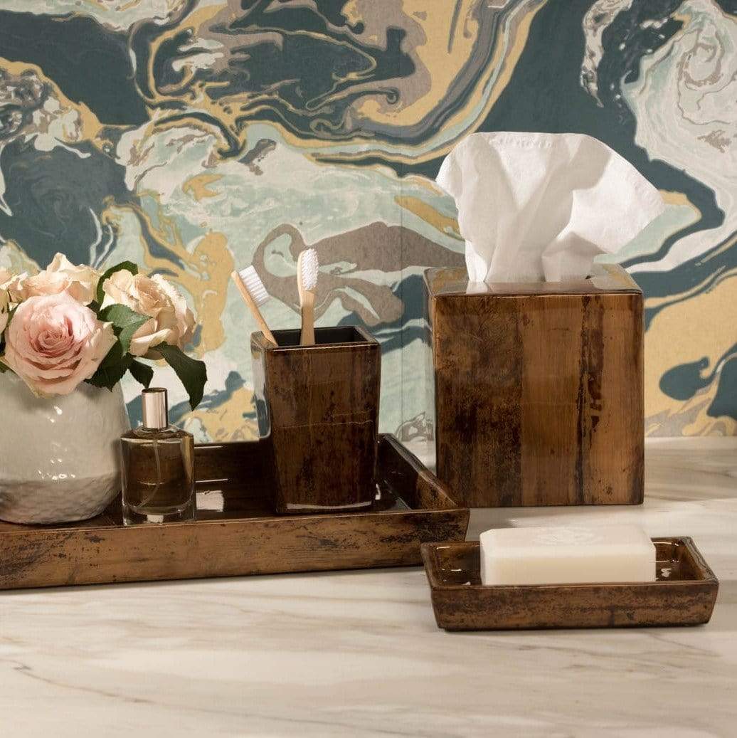 The Varadero Tissue Box by Pigeon & Poodle is crafted out of dark-stain banana leaf.