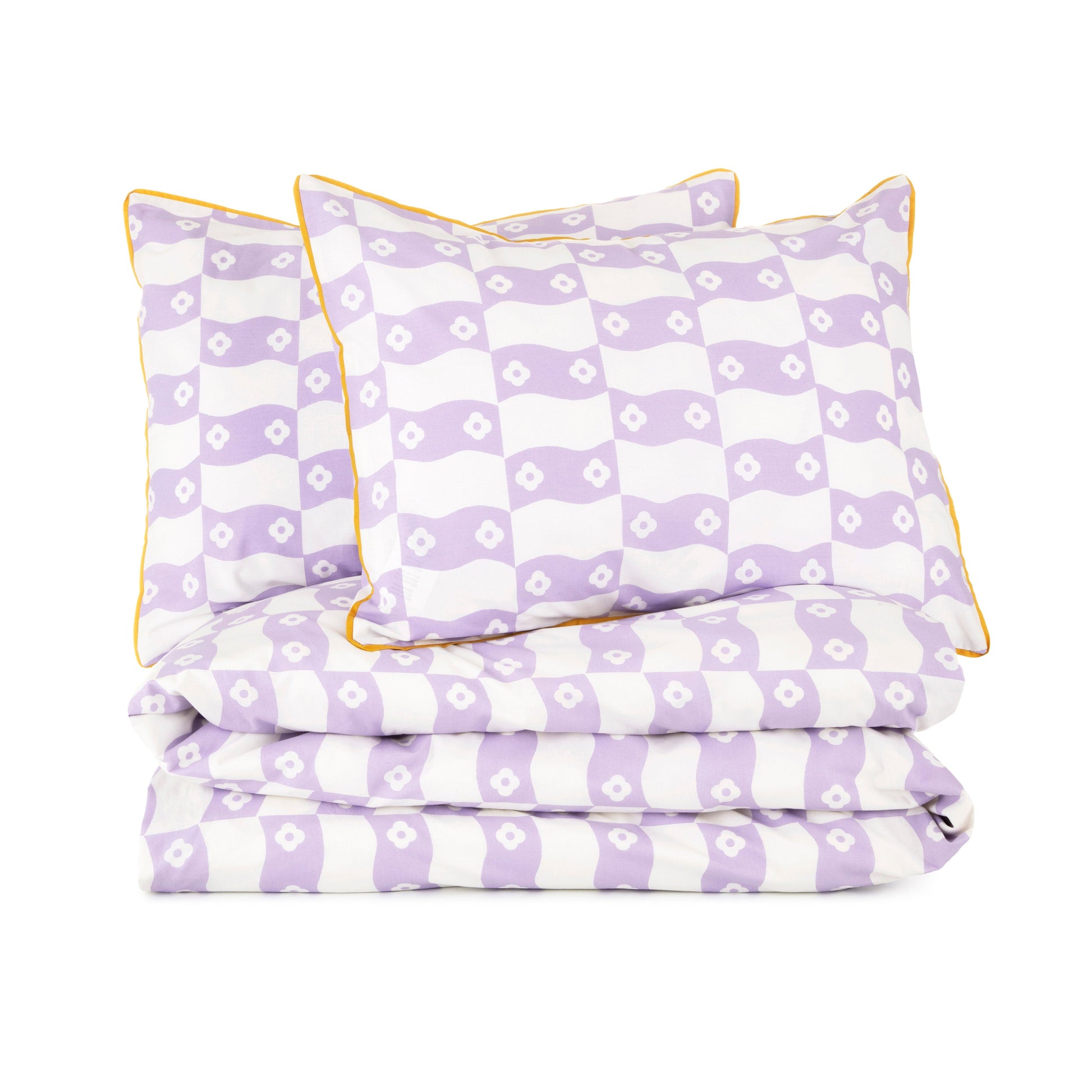 Flower-full tiles undulate across the comforter and matching shams in this bright bedding set. The shell fabric of this stylish comforter, with its whimsical-and-wavy print, is responsibly made of 100% Cotton for a super-soft feel. Its lofty fill comprises 90% Recycled Polyester, reducing the burden on our oceans and landfills. Adding an eye-catching element to the set, which is available in multiple sizes, are matching shams featuring attractive contrast-color piping for a neat-and-tailored look. It carries the MADE IN GREEN label, meaning it was created in environmentally friendly, socially responsible facilities. Coordinates perfectly with Novogratz printed sheet sets and body pillows.