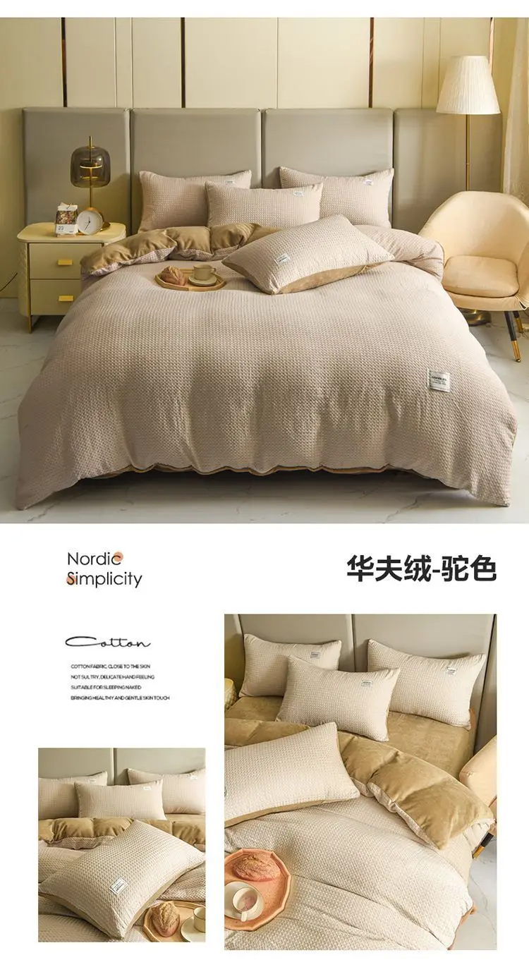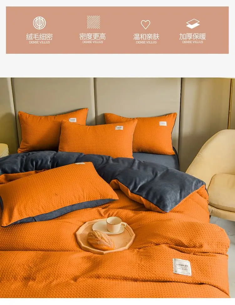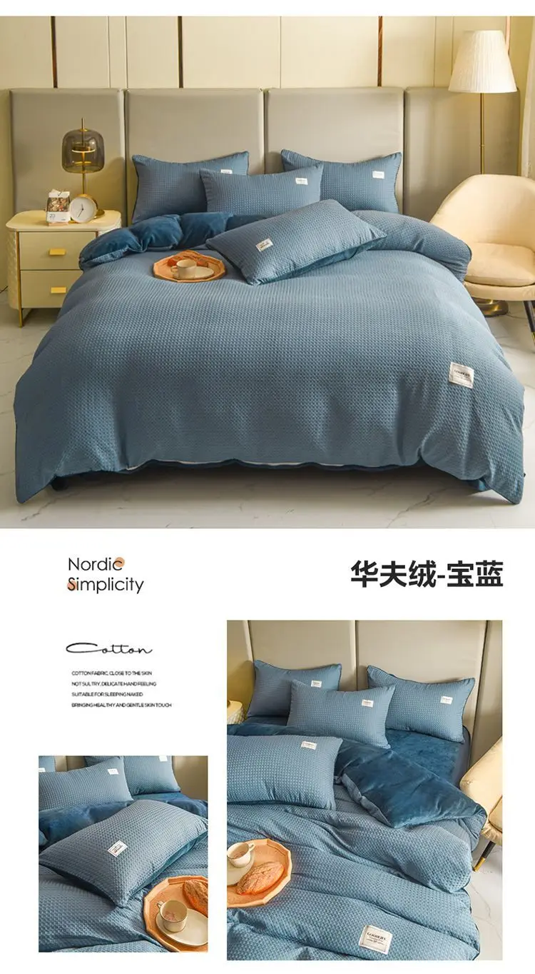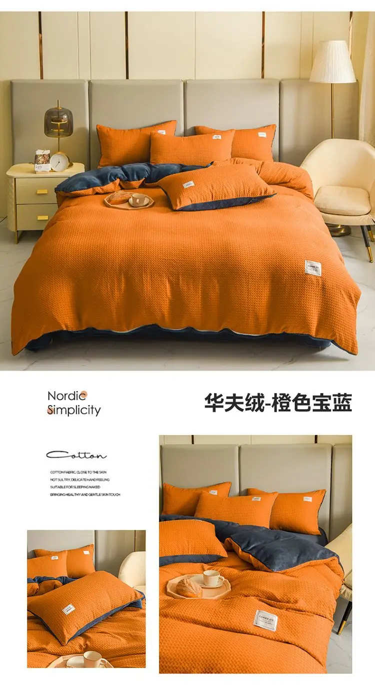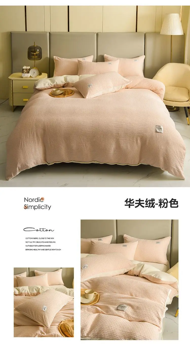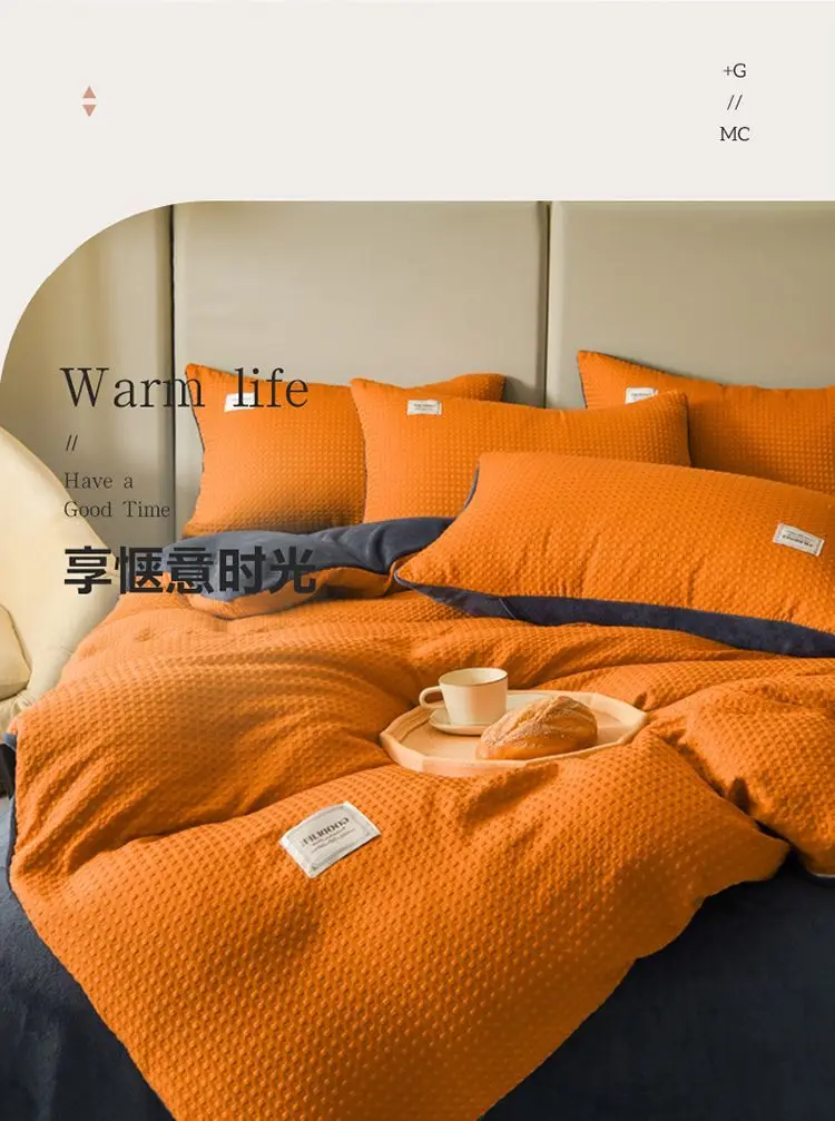 Winter Thickened Padded Warm Duvet Cover Set Japanese Solid Color Quilt Cover Bed Sheet Pillowcase 4pcs Luxury Queen Bedding Set