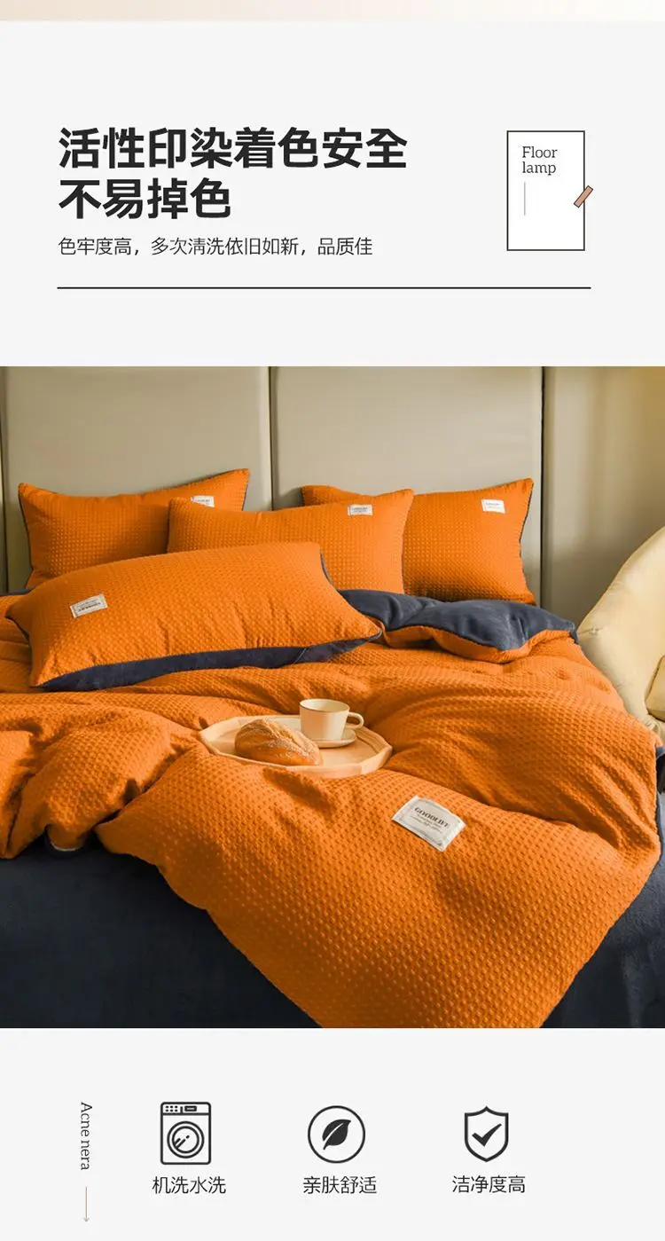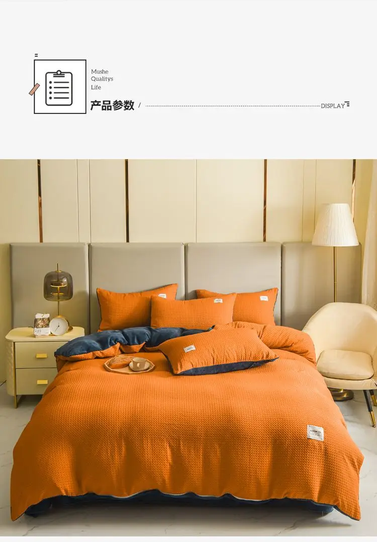 Experience the Ultimate in Winter Comfort with our Thickened Padded Duvet Cover Set - Japanese Inspired Solid Color Quilt Cover, Bed Sheet, and Pillowcase 4pcs Luxury Queen Bedding Set! This set is designed to provide you with the coziest and most stylish bedding experience for the cold winter months.