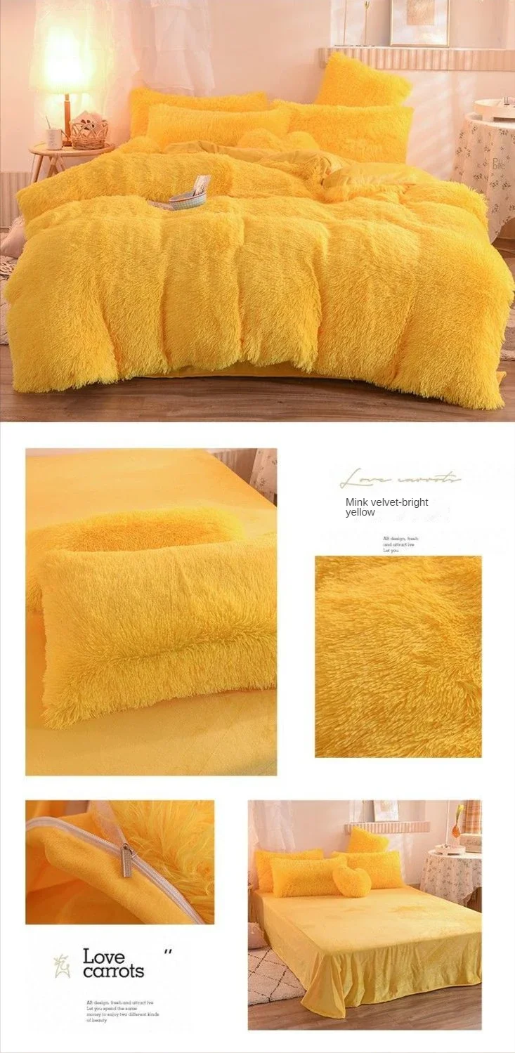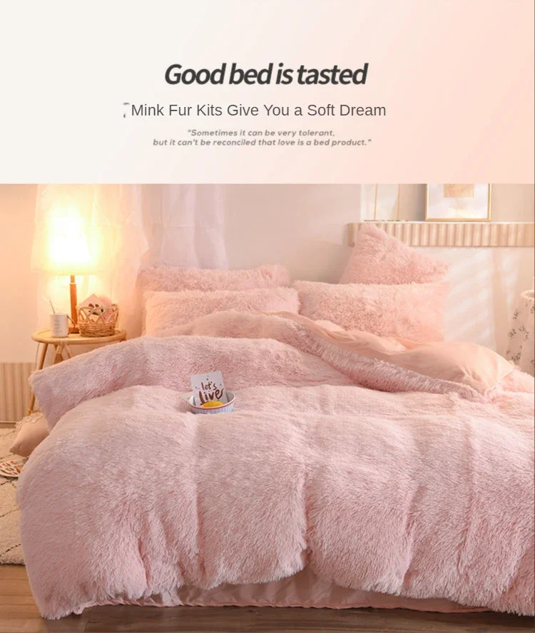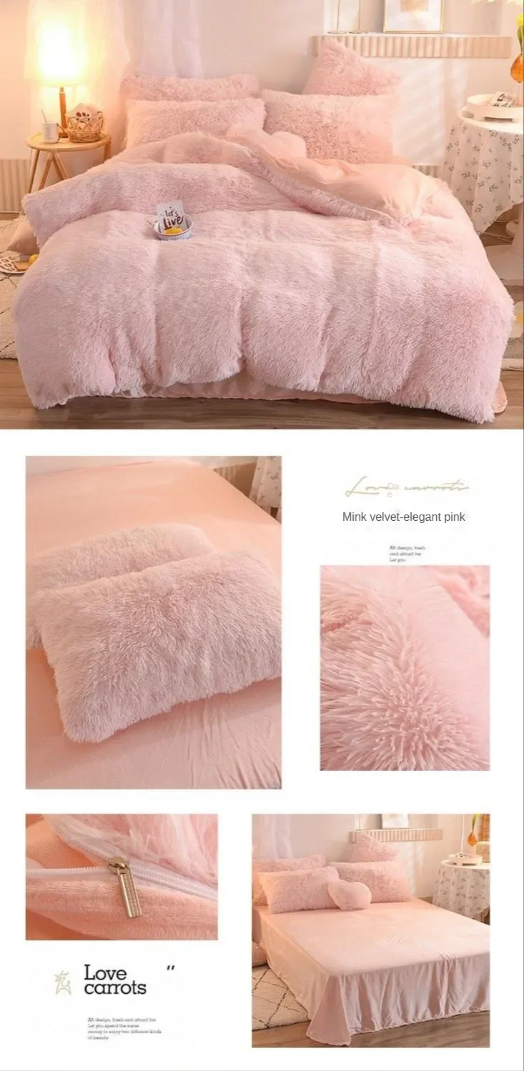 2022 Super Shaggy Quilt Cover Super Warm Bed Plush Velvet Bedding Set Lamb Girls Wool Cover Princess Pillowcase Cashmere Duvet