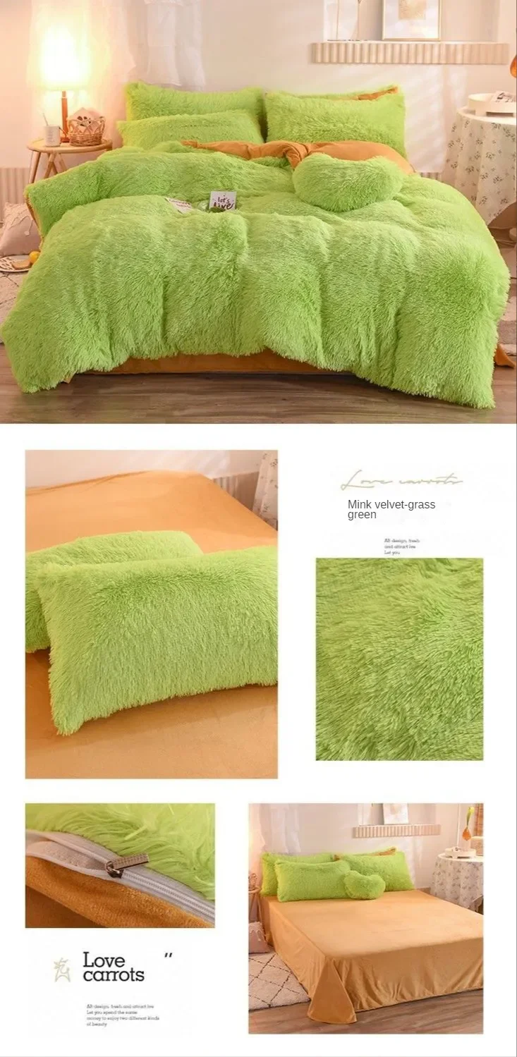 This luxurious bedding ensemble includes a soft plush Kawaii Mink Velvet Queen Duvet Cover, matching sheets, and pillowcases. 🌟
